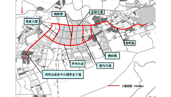 项目位于贵州省东南部的黔东南苗族侗族自治州凯里经济开发区内,总投资23.09亿元,其中本标段直接工程费为19.32亿。该项目地下综合管廊总长度为23240m,共分为8段实施,即金源大道、春晖路、摆仰路、摆马大道、铜新路、绵索至和平村滨江大道、州群众服务中心城市主干道、开司大道,计划工期1098日历天。