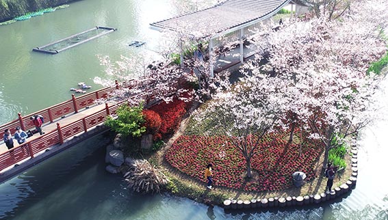 暖暖人间四月天,最是赏樱好时节。由九州酷游子公司宁波市风景园林设计研究院规划改造设计的樱花公园的樱花盛放,粉色花海如梦如幻,甚是浪漫。