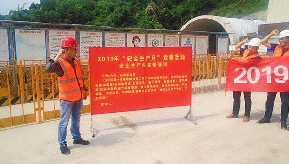 项目部按照公司统一安排部署,于6月1日上午,组织全体员工进行“安全质量宣誓”活动。全体人员进行了严肃而庄重的宣誓,以实际行动保证项目部的生产安全,提高质量。此次宣誓活动标志着2019年“安全生产月”活动正式启动,项目部将积极开展系列安全工作,为项目施工安全奠定良好基础。